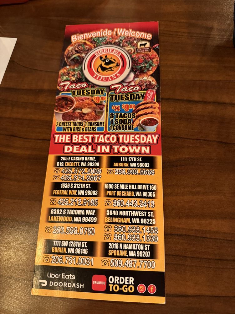 Birrieria Tijuana, a Mexican restaurant located in Burien, WA, offers a variety of traditional Mexican dishes. Customers rave about the flavorful Birria Res used to dip quesadillas and cheese tacos. The homemade corn tortillas and hot serrano peppers add an extra kick to the dishes. The Asada Fries, Birria Burrito, and Caldo Birria Soup are must-try options on the menu. Customers also praise the cheese tacos for their delicious flavors and fresh salsa. The restaurant's eclectic decor and ample seating make for a pleasant dining experience. Birrieria Tijuana stands out for its generous portions and vibrant flavors, making it a go-to spot for Mexican cuisine lovers.